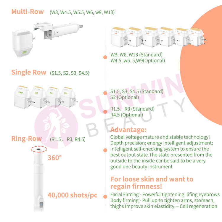 An advancing new high-intensity focused ultrasounic technology designed instrument, change the traditional face lift wrinkle cosmetic surgery non surgical wrinkle technology the instrument will release highly concentrated focus sonic energy can penetrate into the deep SMAS fascia skin tissue and coagulation of high heat in the proper position the deep dermis to stimulate the skin to produce more collagen and thus to tighten the skin so the skin becomes firmer.