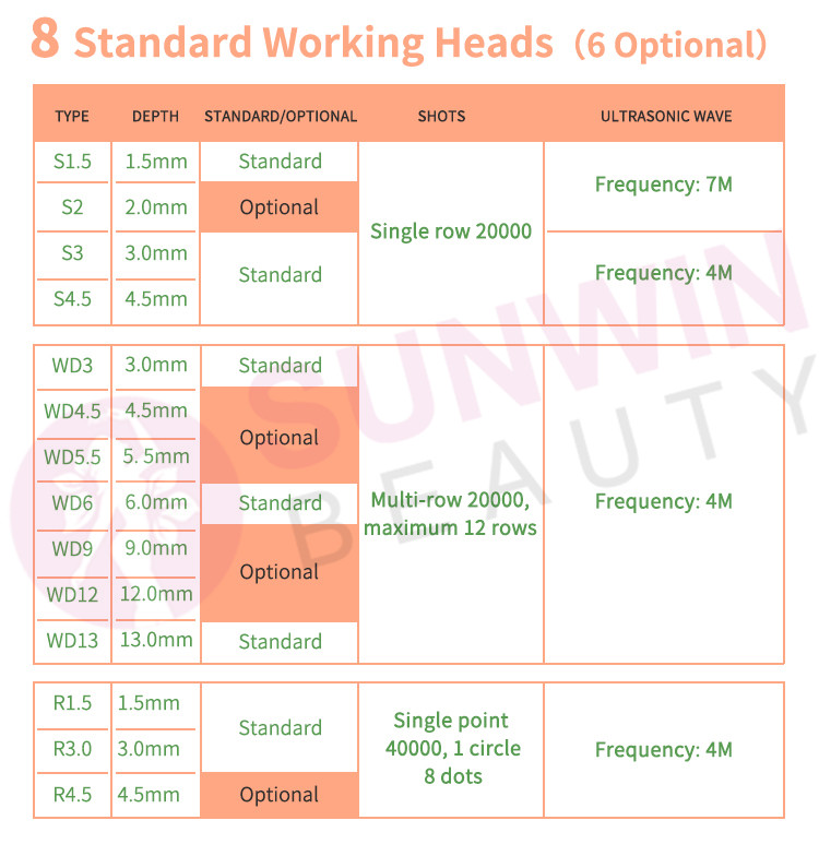 Facial single row precision + 360 circular output, according to facial features no dead angle lifting, energy penetrates deep into the deep layer of muscle abuse, stimulates collagen regeneration, enables cells to repair themselves, and finally achieves the effect of wrinkle removal and tenderness, especially for lifting facial muscles Abuse and lighten the nasolabial folds and the fine lines at the bottom of the muscle have obvious effects.