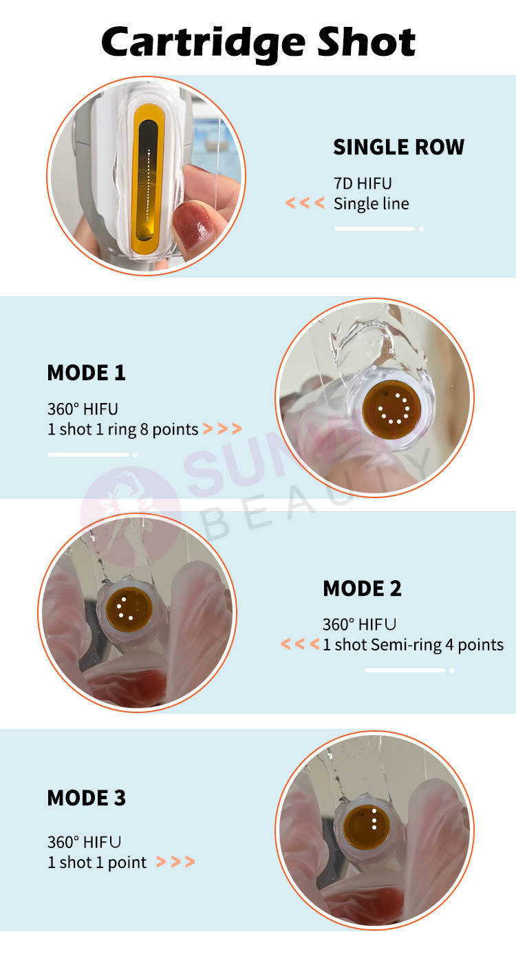 2.Additionally, 7D HIFU has different focal areas which can be well used for slimming certain areas of the body and rejuvenating and lifting all parts of the face and neck, even around the eyes and mouth.7D HIFU also can impact different layers of the skin, whereas traditional HIFU is limited to 1.5/3.0/4.5mm depths.7D HIFU devices have two modes of single shot and continuous operation.